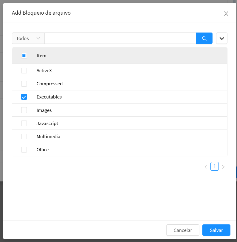 Serviços > Web Filter > [perfil desejado] > Bloqueio de arquivo > Adicionar